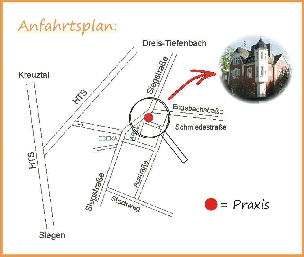 Die Praxis selbst befindet sich in der 2. Etage (kein Aufzug).